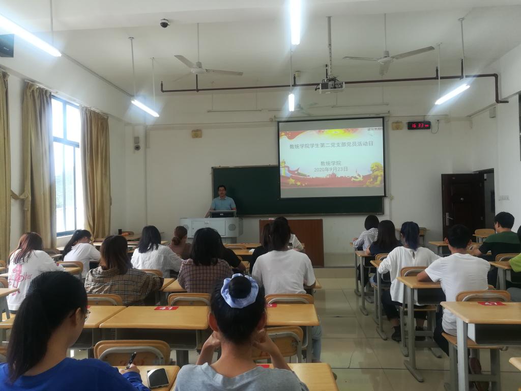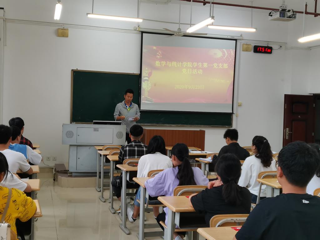 学生第一党支部副书记罗超从学习的意义、主要内容和怎么学三个方面深入浅出谈了自己学习《习近平谈治国理政》第三卷的收获和体会,要求支部同志读原文、悟原理,真正做到学懂弄通做实,用新思想武装头脑、指导实践,不断增强“四个意识”、坚定“四个自信”、“做到两个维护”。