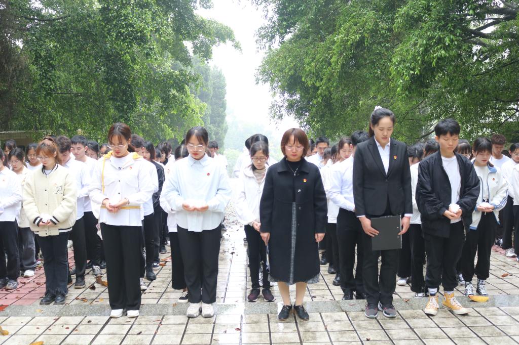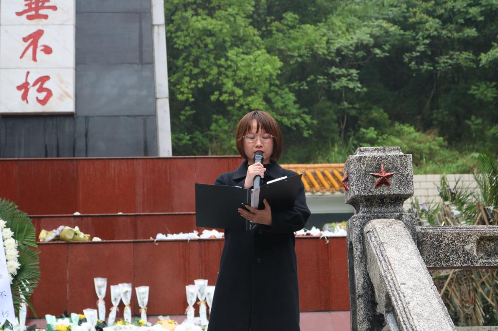 学生党员代表彭美云发言,她指出作为一名学生党员,应铭记历史,把握现在,为祖国建设奉献自己的青春力量。罗曼老师在发言中号召同学们深入了解传承红色文化,牢记历史使命,从革命先辈的精神中汲取力量,筑牢理想信念,补足精神之钙,做到学史明理、学史增信、学史崇德、学史力行,努力练就过硬本领,要为国家进步、民族繁荣昌盛贡献自己的一份力。最后,全体成员有序地围着烈士墓默默绕行一圈,献上自己亲手制作的小白花以示对先烈深切缅怀。