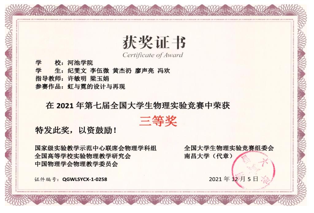 近五年来,学院始终坚持“以赛促学、以赛促教、以赛促创”的育人理念,构建了特色鲜明的实践教学体系。通过连续十一年举办“我能”学科技能活动月,形成了“学生自主、教师指导”的培养模式,活动覆盖全院80%以上学生,成为具有广泛影响力的实践品牌。在这一体系的推动下,学生在各类高水平学科竞赛中屡创佳绩:累计超过半数在校生参与全国大学生数学建模竞赛等国家级赛事。在2022年全国大学生数学建模竞赛中我院学子斩获国家级二等奖2项、自治区级奖项9项,创历史最佳成绩;2024年实现新突破,物理学专业学子首获全国大学生物理实验竞赛(讲课类)一等奖。