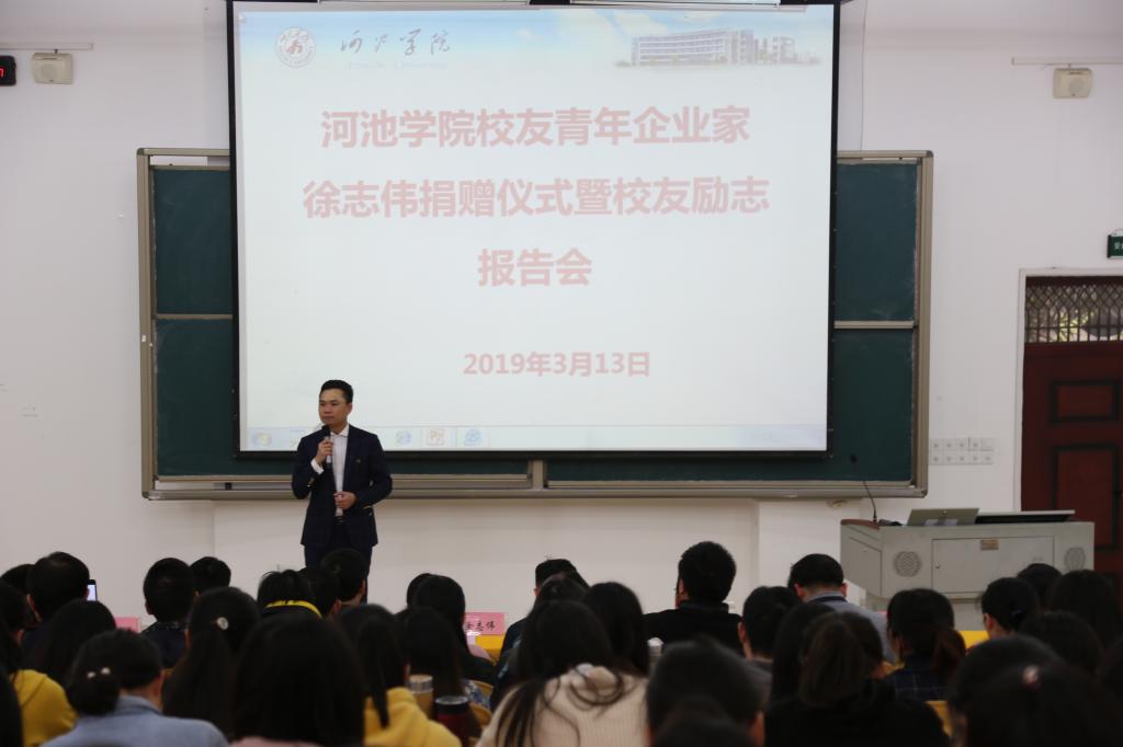 捐赠仪式后,徐志伟为现场同学作了题为《十年的创业之路》的励志报告。他回忆了自己在校期间的求学创业时光、十年创业过程中的经验教训,希望同学们珍惜大学美好时光扎实专业基础,提升动手实践的能力,不断提升个人综合素质,更好地适应社会发展需求。