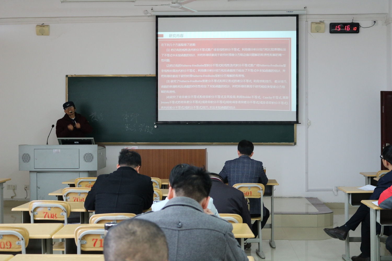 2019年4月3日下午,数学与统计学院在西区格致楼710开展第二场学术交流报告会,会议由该院科研秘书王新奇老师主持,学院党总支部书记黄星寿、院长罗日才以及全体教职工参加了此次学术交流报告会。