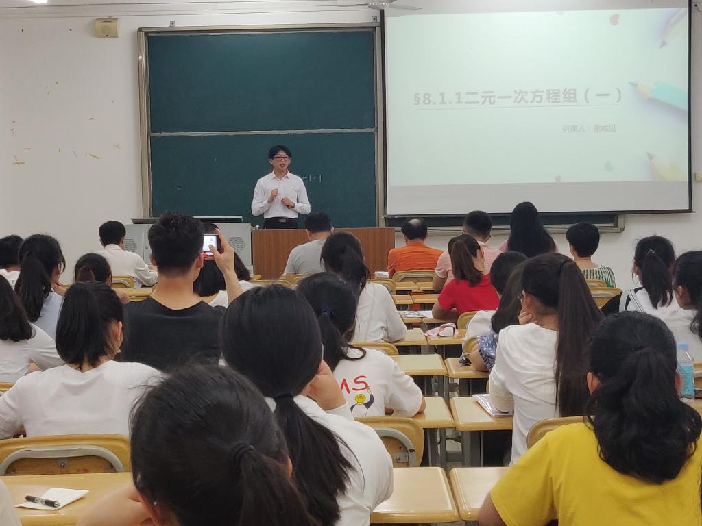 为了提升师范生的教育教学技能,夯实教育教学基本功,强化师范生综合能力发展。数学与统计学院于4月9日晚在西区格致楼301教室举办了数学与统计学院第十一届师范生教学技能大赛。本次大赛由数统学院副院长肖春梅、教务处老师莫燚、数学与应用数学系主任覃永昼、副主任卫银虎、统计系老师李绍波等五位老师担任评委,学院师生代表观看了本次大赛。