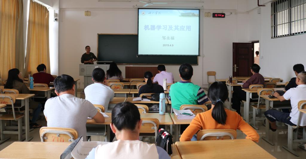 为促进教师之间的学术沟通和交流,全面提升科研能力,数统学院于4月10日下午在西区格致楼710教室召开了数统学院第一届第三场学术交流报告会,会议由数统学院科研秘书王新奇老师主持,学院党总支部书记黄星寿、院长罗日才以及全体教职工参加了此次学术交流报告会。