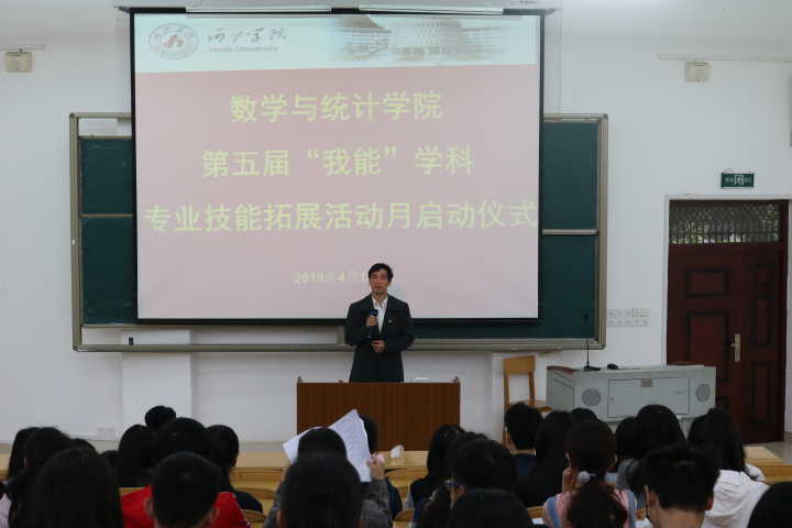 为进一步适应学科转型发展需求,结合数统学院学科专业特点,进一步树立育人为本,以职业需求为导向的理念,加大应用型人才培养人才力度,全面提高学生的应用能力和综合素质。数学与统计学院于4月14日下午在西区格致楼负102教室召开第五届“我能”学科专业技能拓展活动月启动仪式。学院党总支书记黄星寿、党总支副书记张明进、团委书记罗曼及各班班级代表参加了此次启动仪式。