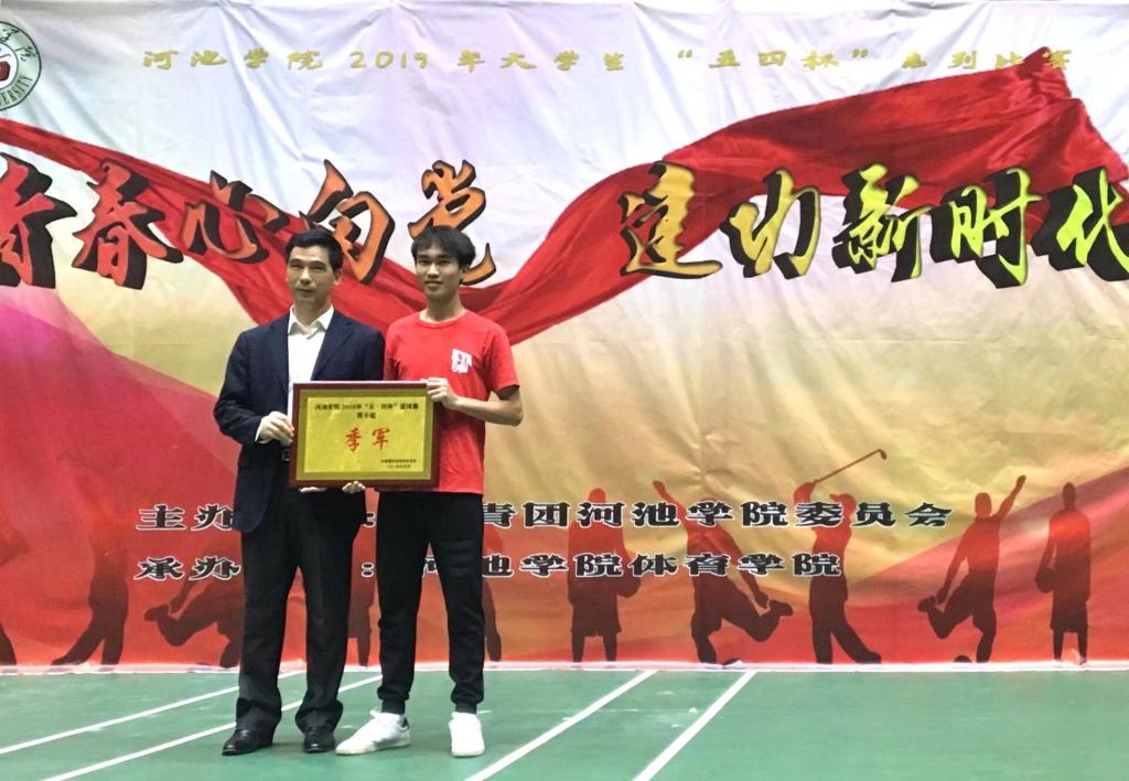 4月29日下午,由共青团河池学院委员会主办,体育学院承办的2019年“五四杯”篮球季军争夺赛赛在东区校友球馆举行。
