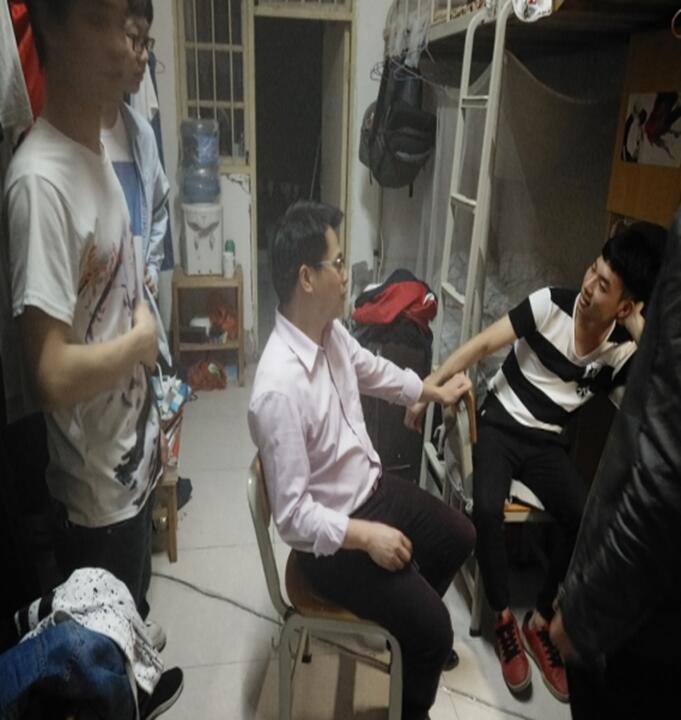 图一:学院老师宿舍排查中关心学生,了解学生需求