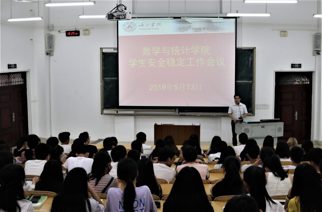 数学与统计学院于5月13日下午在格致楼负102召开学生安全稳定工作会议。会议由党总支副书记张明进主持,各班学生代表参加会议。