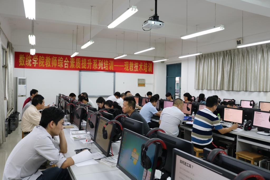 为促进智慧课堂建设,提高教师信息化教学水平,提升课堂教学质量,构建魅力大学课堂。数统学院于5月15日下午在逸夫楼213实验室开展教师素质能力提升之现代教育技术培训会。培训会由我校现代教育技术中心副主任谭可久和我院院长罗日才主讲,数统学院全体教师参加培训会。