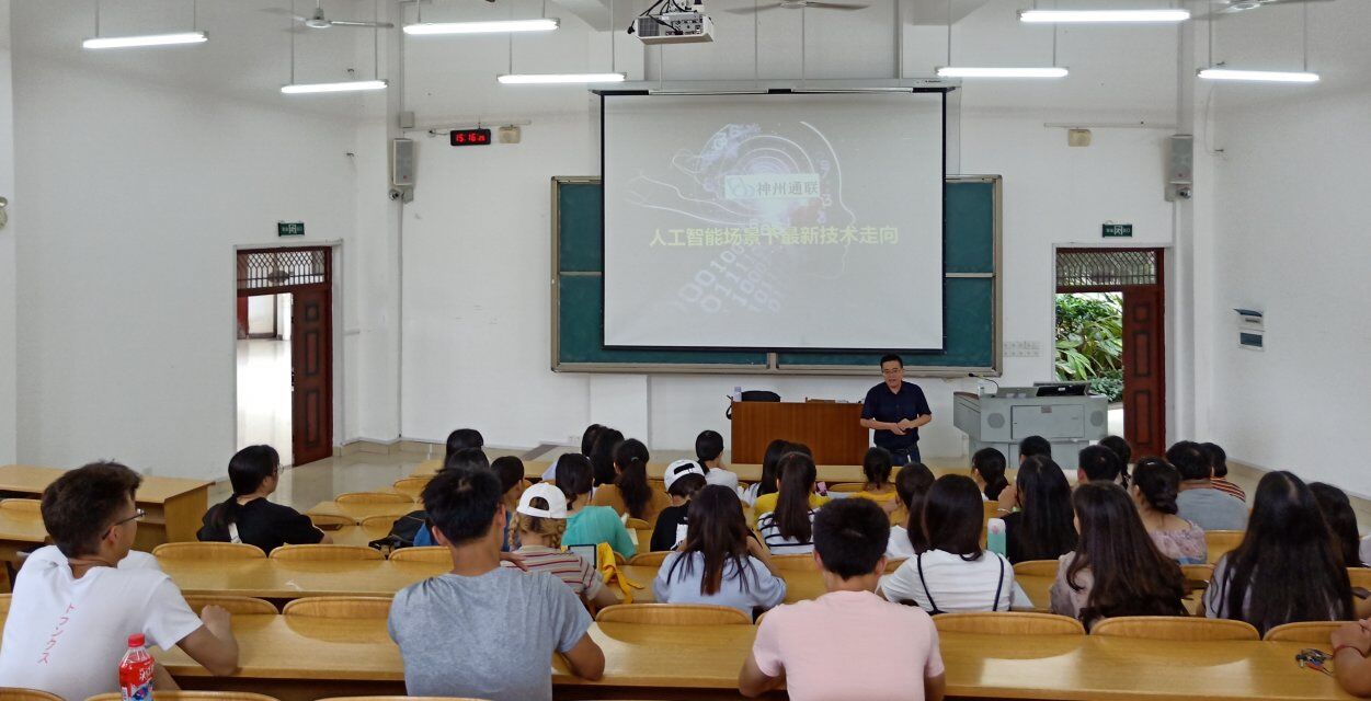 为更好的体现“培养具有创新精神和实践能力的应用型人才”的教育办学理念,推行校企合作的培养模式,增强学生对智能技术投入的了解,挖掘学生技术操作的潜能,数学与统计学院于6月12日下午在格致楼负102教室开展“人工智能场景下最新技术走向”就业技能培训课,本次培训课由数统学院院长罗日才主持,深圳神州通联公司副总经理刘晓涛主讲,学院2016级经济统计专业、应用统计专业及信息与计算机科学专业学生参加此次培训课。