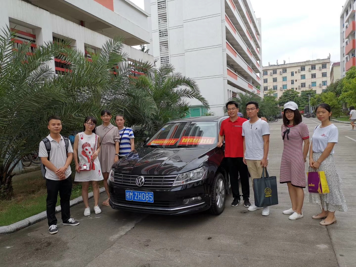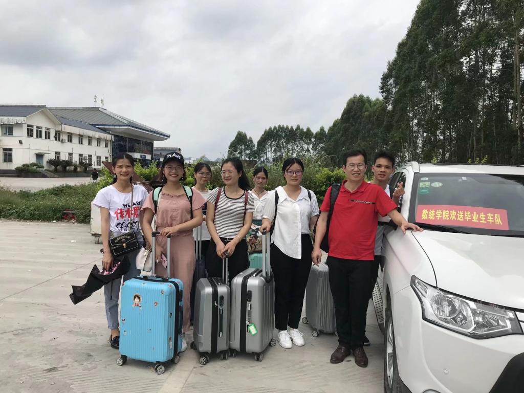 栀子花开的六月是离别的季节,6月29-30日,为了欢送数统学院2019届毕业生顺利离校,河池学院党委常委,组织部部长侯宗毅、数统学院党总支部书记黄星寿、院长罗日才、党总支部副书记张明进、学院副院长韦玉程等九位老师自发组成欢送小分队,驾驶自家车辆免费搭载毕业生赴汽车、火车站,在毕业生离校奔赴更好明天的道路上再尽自己的一份力。毕业生纷纷表示,四年来,老师们忘我的付出铭记在心,离校之际领导老师的这份关怀更让人感动不已,他们会怀揣着领导老师的期盼和对母校的不舍,踏上人生新征程,努力开创美好的明天。