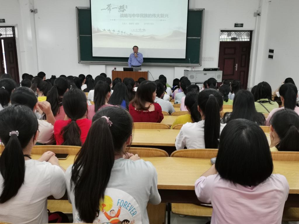 10月16日,数学与统计学院西区格致楼负102教室举办了主题为“‘一带一路’倡议与中华民族的伟大复兴”的专题讲座,本次讲座由我校资深教授银建军主讲。数学与统计学院2018级全体学生参加此次讲座。
