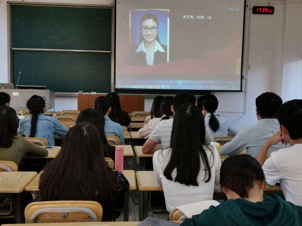 10月31日下午,数统学院党支部开展“学习黄文秀同志先进事迹”主题党日活动,各党支部组织党员观看了《不忘初心、牢记使命之黄文秀—新时代青春之歌》专题片。在观看现场,大家被黄文秀同志的先进事迹所感动,黄文秀同志不忘初心、一片赤忱,在脱贫攻坚第一线倾情投入、奉献自我的精神给全体党员树立了榜样,激发了全体党员 “不忘初心、牢记使命”的决心。与会学生党员纷纷发言表示:要以黄文秀同志为榜样,心怀感恩之心,切实提高责任感和使命感,用实际行动践行党员的全心全意为人民服务宗旨,做社会主义事业的合格建设者和可靠接班人,在新时代的长征路上做出新的更大贡献!