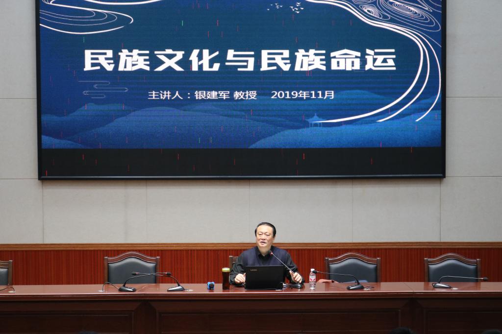 11月17日晚,银建军教授在我校弘毅楼1区205报告厅作“民族文化与民族命运”的专题讲座,本次讲座由数学与统计学院党总支副书记张明进主持,数统学院2017级全体同学参加本次讲座。