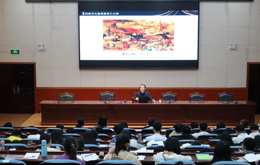 讲座中,银建军教授从中国文化的背景、民族文化是民族存亡之根、西方人的文化战略以及21世纪是怎样的一个世纪等四个方面对民族文化与民族命运的关系进行了深刻的解析。他强调,一个民族的文化凝聚力越强,这个民族的凝聚力就越强,热爱民族文化,热爱自己的祖国是当代大学生的重要使命和责任。希望同学们能够热爱中华文化,勇于担当传播弘扬传统文化的重任。