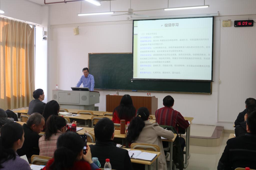 12月11日下午,数学与统计学院在格致楼710室召开本科教学审核评估迎评工作会,会议由数统学院院长罗日才主持,学院党总支部书记黄寿星及全体教职工参加会议。