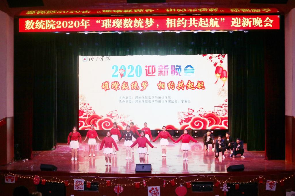 进一步促进学风建设深入开展,丰富学生校园文化生活,展现新时代大学生积极向上的精神面貌。12月13日晚,数学与统计学院于艺术楼演播厅举行“璀璨数统梦相约共起航”2020年迎新晚会。学校党委常委组织部部长候宗毅,数学与统计学院党总支部书记黄星寿、院长罗日才以及学院部分教师和各班级班同学共同观看演出。