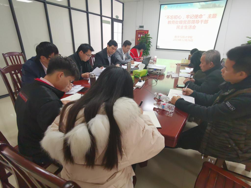 根据学校党委统一部署要求,数学与统计学院于2019年12月26日在格致楼612会议室召开处级领导干部“不忘初心、牢记使命”专题民主生活会,会议由学院党总支部书记黄星寿主持。