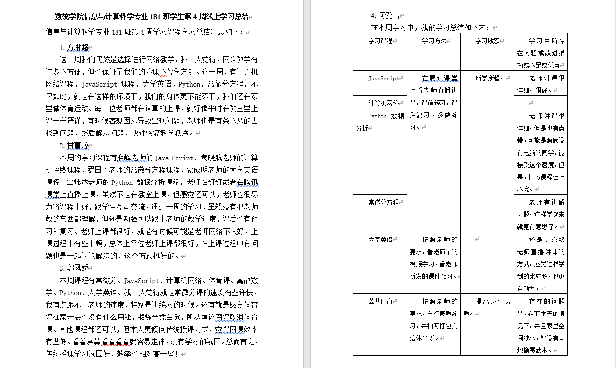 在确保教学质量不降低上,我院不断完善在线教学质量监控体系,重点加强教学质量监控与持续改进工作。学院教学督导领导工作小组继续做好线上教学秩序检查工作,督导小组成员覆盖每一门课程直播平台,对线上课堂做到实时掌控,保证了线上教学平稳有序进行。同时通过收集师生意见及建议、学生学习总结等多种方式及时获取线上教学反馈意见,从现教中心统计数据及学院师生反馈意见来看,大多数授课教师状态饱满,教学环节合理,讲授流畅,授课内容有深度、有广度。师生之间互动良好。多数学生认为在线教学形式新颖,能够给学生带来新鲜感,学生上课情绪热情,课堂氛围热烈,学生参与度高,线上教学效果良好。此外,在线上教学过程中,学院尤其关注仍滞留在中高风险地区未能返校的教师,通过各种方式解决教师实际困难,仍滞留在中高风险地区的钟华、磨锋等老师也努力克服困难,确保在线课堂顺利开展,针对在线学习困难的边远地区学生,学院要求任课教师细化学习指导,确保学生一个不掉队;同时,针对毕业年级,学院也在线上同步推进毕业论文线上指导,确保毕业班学生能够如期毕业。