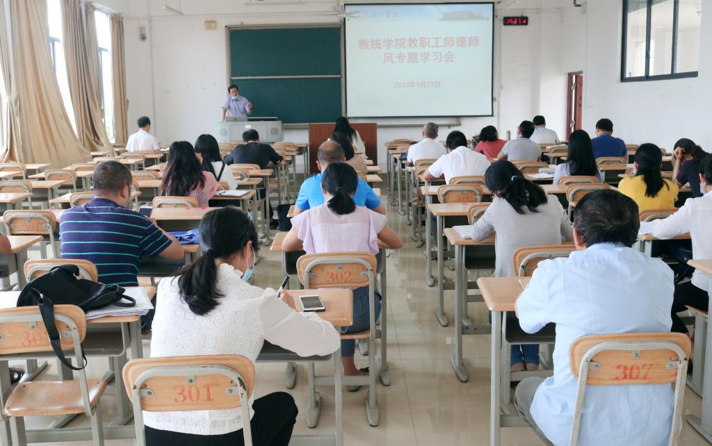5月27日,数学与统计学院在格致楼301教室召开师风师德建设专题会议,会议由院长罗日才主持,学院全体教职工参加会议。