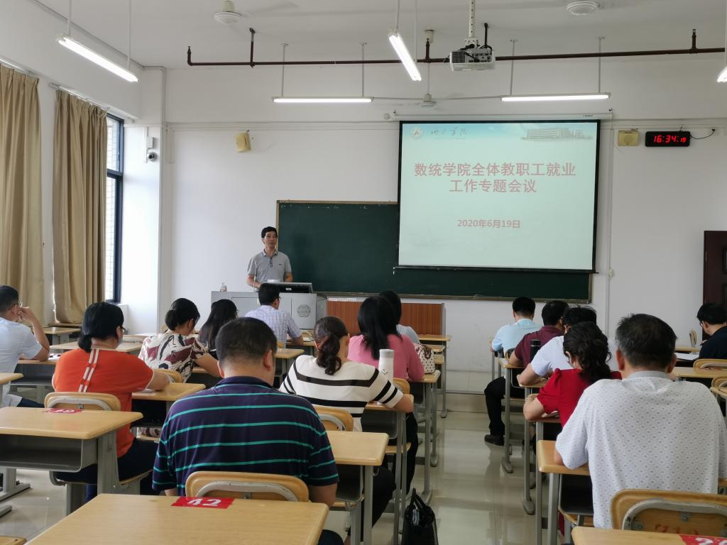 6月19日,数学与统计学院在格致楼710教室召开2020届毕业生就业工作专题会议,专题研究部署疫情影响下的学生就业工作。学院领导及全院教职工参加会议,会议由学院党总支部书记黄星寿主持。