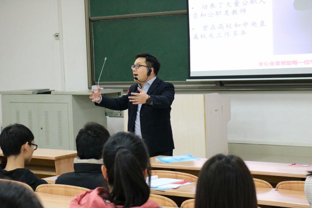 交流会上,黄祖淞首先进行了简单的自我介绍,他是鸿政教育的创始人,公职类考试资深研究员、培训师。随后他就从广西农信社招录专业及报考条件、待遇及职业发展前景、笔试考情及备考攻略与面试考情等方面内容展开分享。针对笔试以及面试考情问题,黄祖淞通过历年的考试真题来与同学们分享解题技巧。在面试经验分享环节,他指出应提前了解农信社招聘岗位的职责,做到考时不紧张,回答条理清晰,以事例论证自己的观点,并建议同学们多阅读理论性文章、社会调查报告、人民日报等不断扩充自己的知识面。最后,张明进指出2021的就业形势将是充满机遇与挑战的一年,面对疫情带来变化与影响,同学们要积极做好准备,打磨自己的专业技能,充分利用好学院和学校的平台和资源,积极迎接机遇和挑战把四年所学知识与技能在实践中检验与打磨。