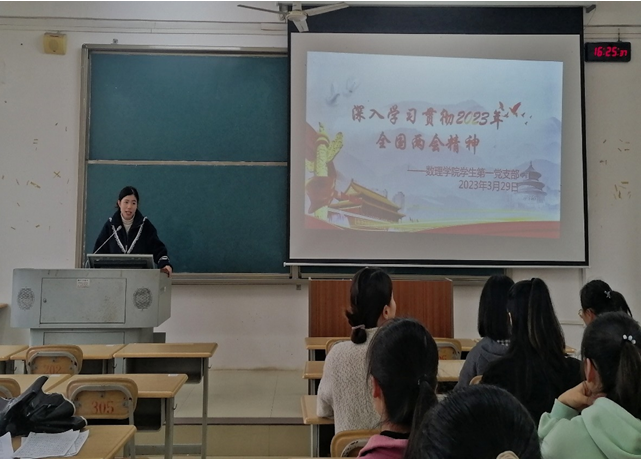 3月29日下午,betway必威西汉姆联官网学生第一党支部在格致楼301教室开展2023年全国两会精神专题学习会。会议由党支部书记姚宁同志主持,支部全体党员参加会议。