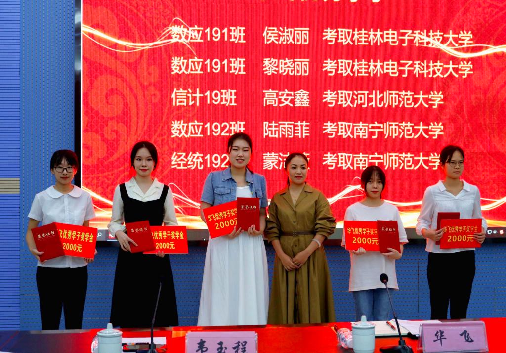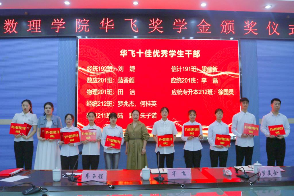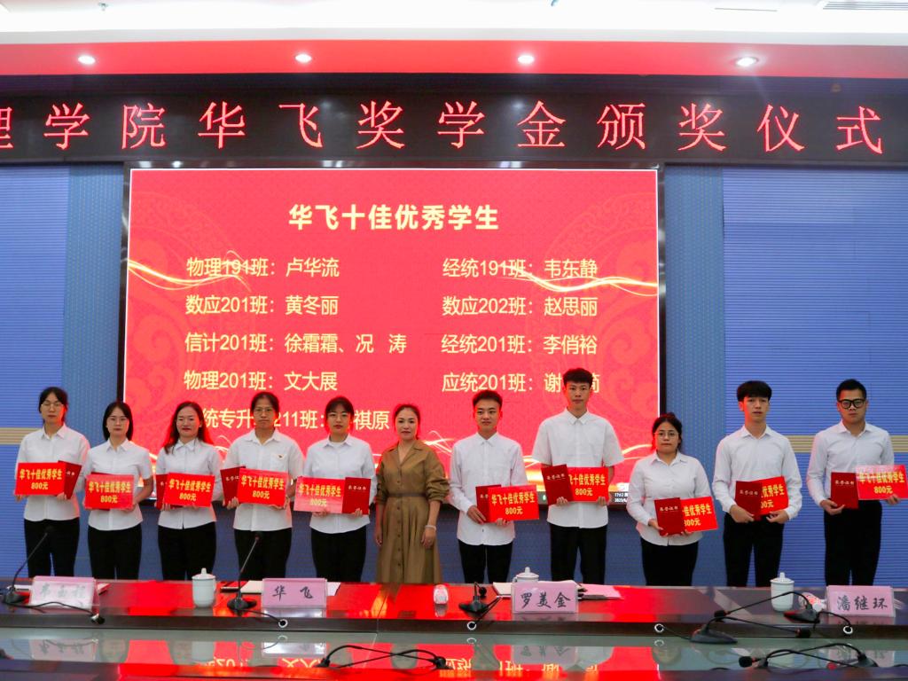 据悉,第二届“华飞教育基金”共颁发了“华飞优秀学子奖”5人,每人奖励2000元;“华飞十佳学生奖”每人奖励800元;“华飞十佳学生干部奖”每人奖励600元;“考研优秀指导老师奖”三个教学系,每个单位奖励1200元。(通讯员:梁耀元 摄影员:贝心慧 校对:石宁 审核:罗美金)