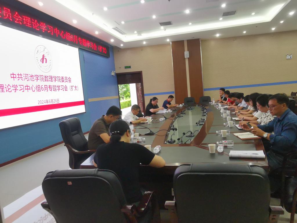 6月26日,betway必威西汉姆联官网党委理论学习中心组在图书馆122会议室召开2024年第四次专题学习会,本次学习会特邀学校党委常委、总会计师韦兴文,财务处副处长刘玲巡听旁听,学院党委理论学习中心组全体成员、各党支部书记、各系主任参会。