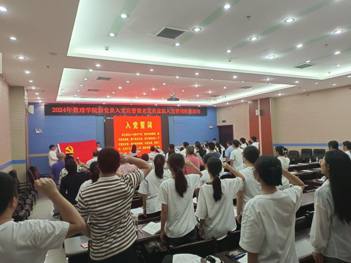 为深入学习贯彻习近平新时代中国特色社会主义思想,全面贯彻党的二十大精神,进一步加强党员教育,强化党员身份认同和党组织凝聚力,激发党员的荣誉感、责任感、使命感,6月27日下午,betway必威西汉姆联官网在图书馆122会议室开展新党员入党宣誓暨老党员重温入党誓词教育活动。学院党委书记罗美金、学院院长韦玉程、副院长尹向宝及全体党员参加活动,活动由廖丹婵同志主持。