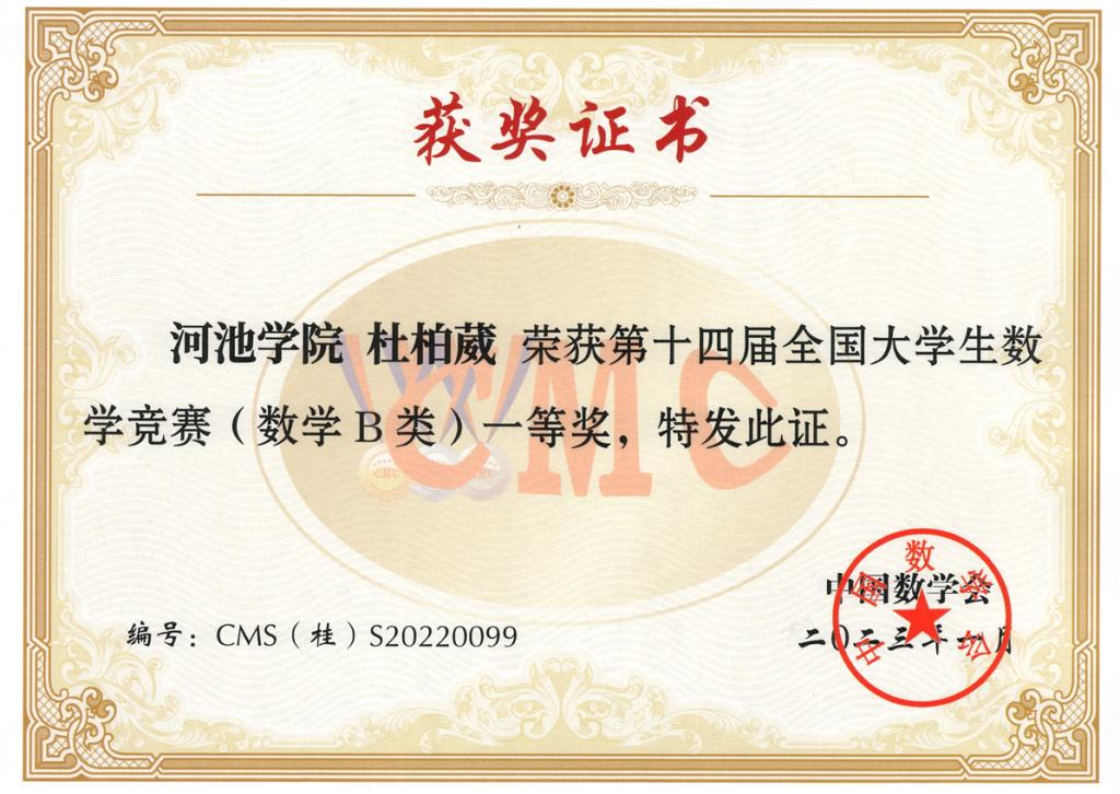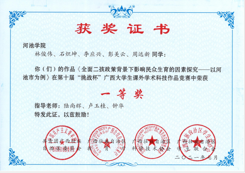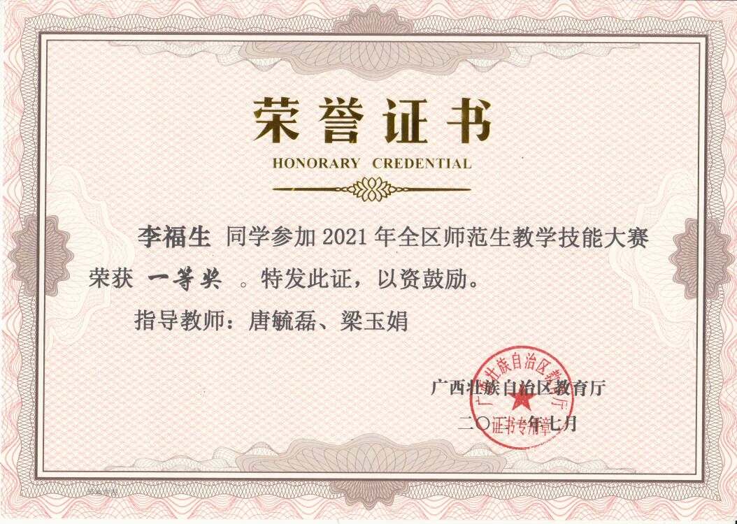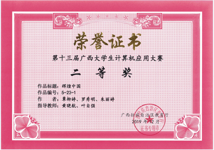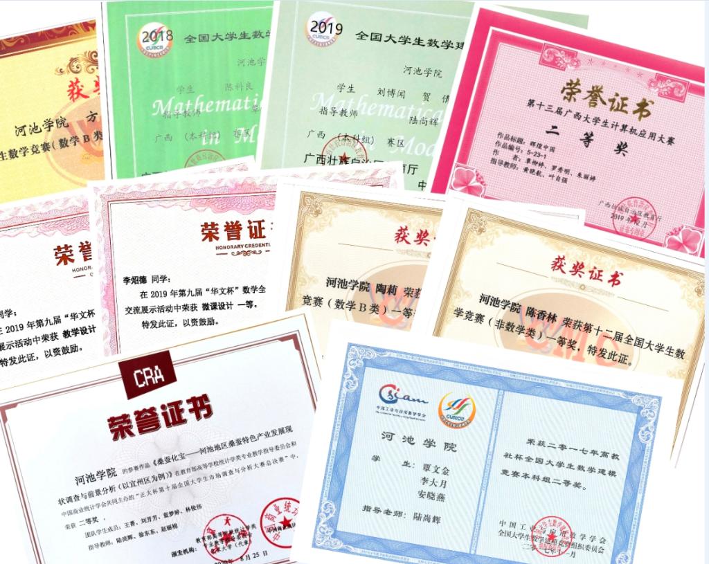 部分学生获奖证书