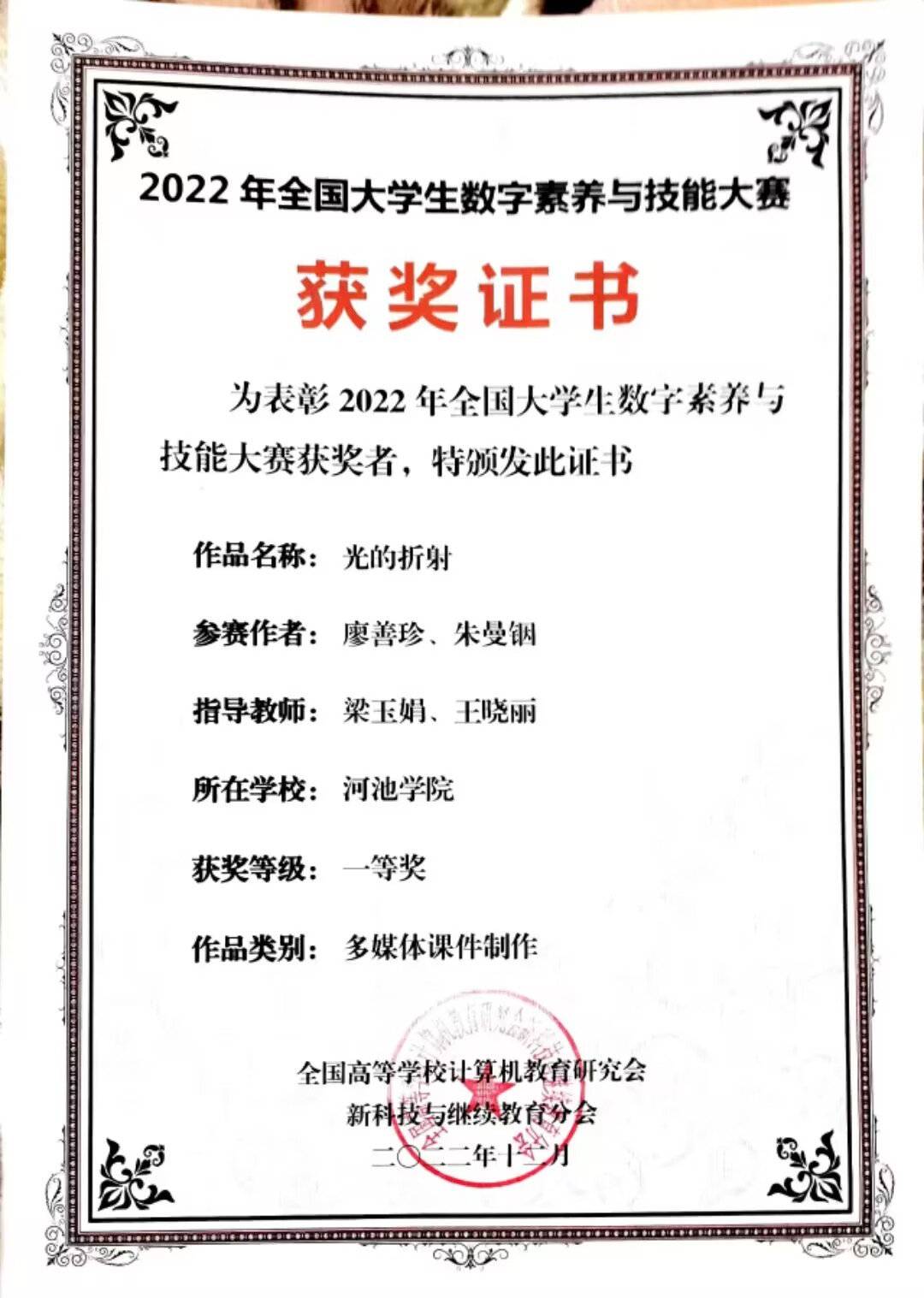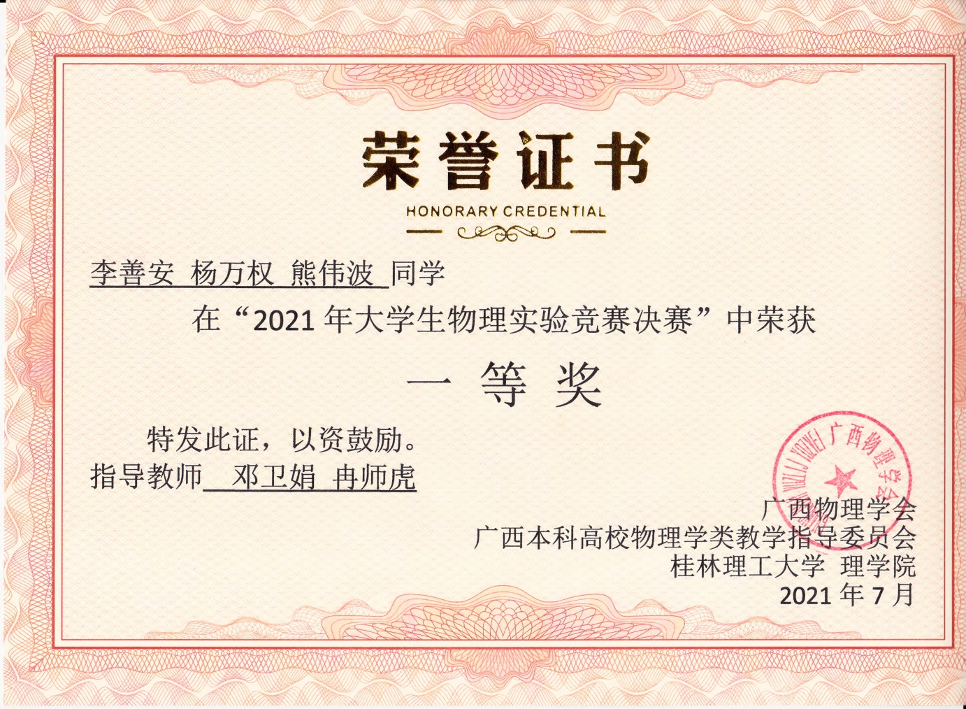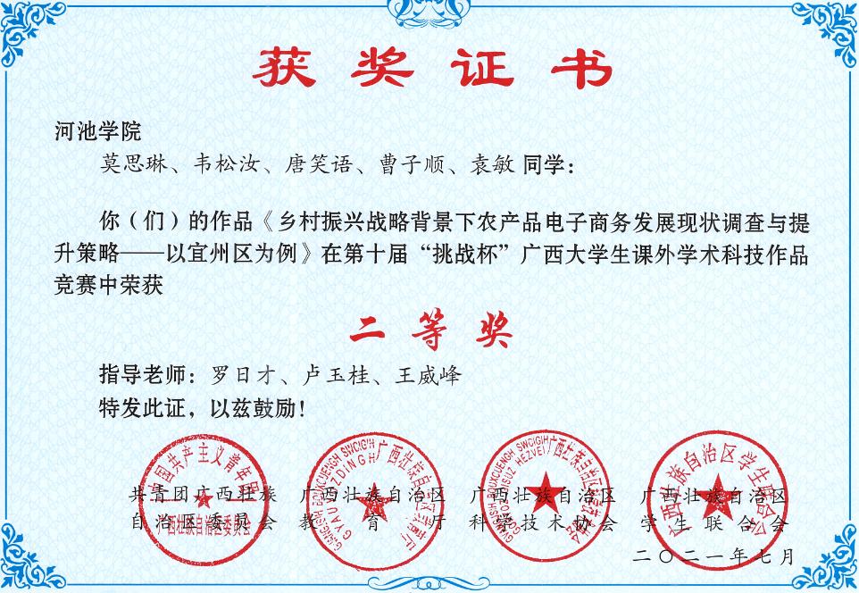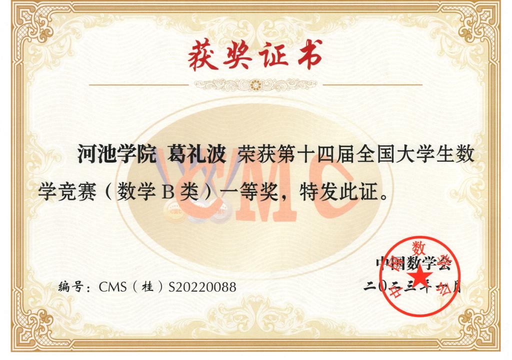 部分学生获奖证书