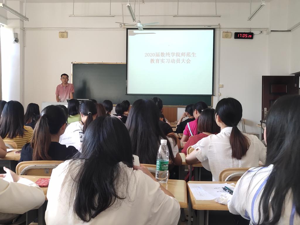 为进一步做好我院2020届师范生毕业生就业工作,数学与统计学院于2019年9月24日下午在格致楼306教室召开2020届是数学应用数学专业毕业实习动员大会,会议由我院数学系教研室副主任卫银虎老师主持,数学系教研室主任覃永昼及2016级数应专业全体学生参加会议。