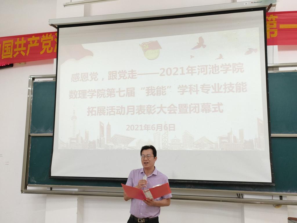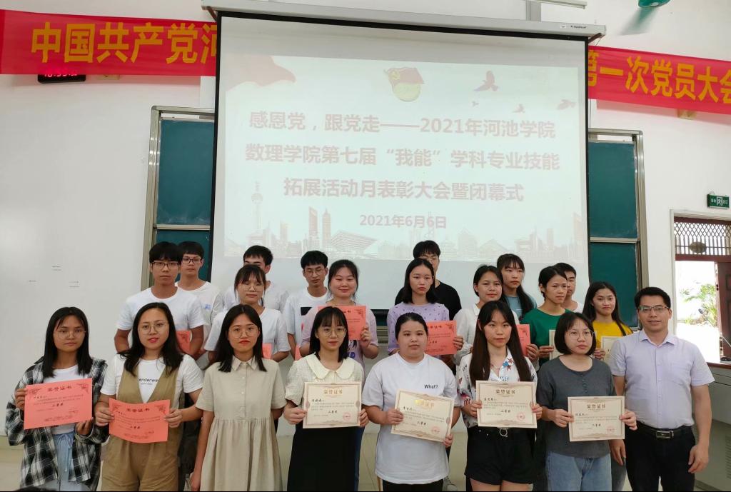 2021年6月6日下午,betway必威西汉姆联官网于格致楼负102教室举行第七届“我能”学科专业技能拓展活动月表彰大会暨闭幕式。betway必威西汉姆联官网院长罗日才、党委副书记张明进、团委书记罗曼、辅导员俞茗、各竞赛项目获奖的同学以及各班级同学代表参加闭幕式。