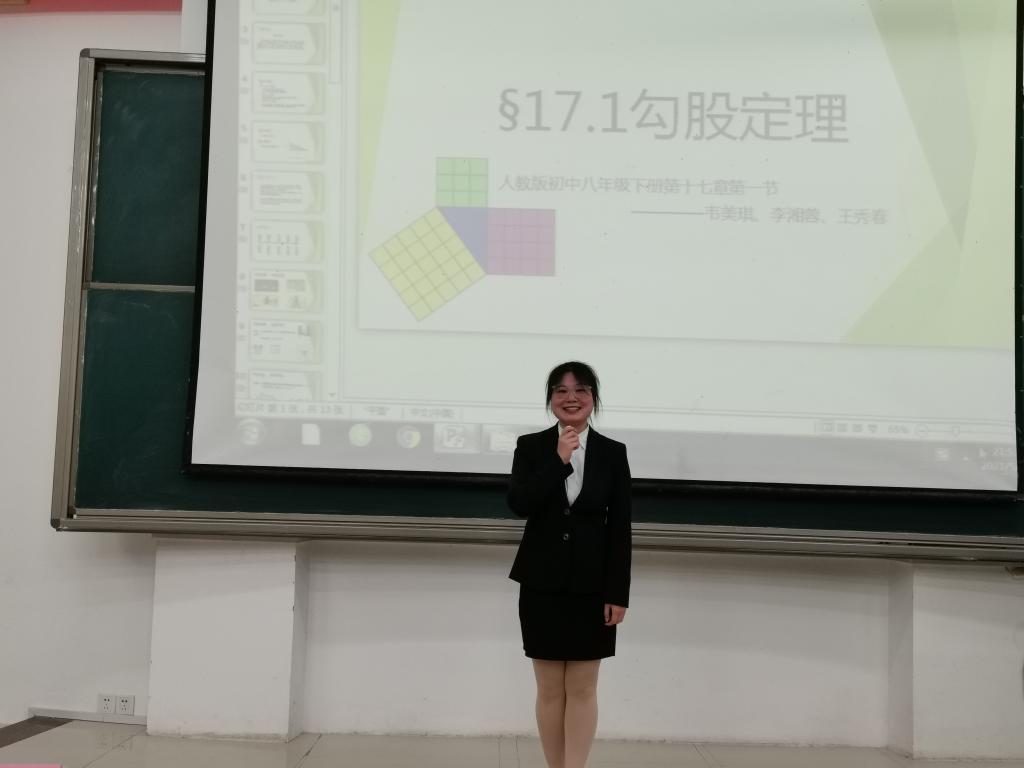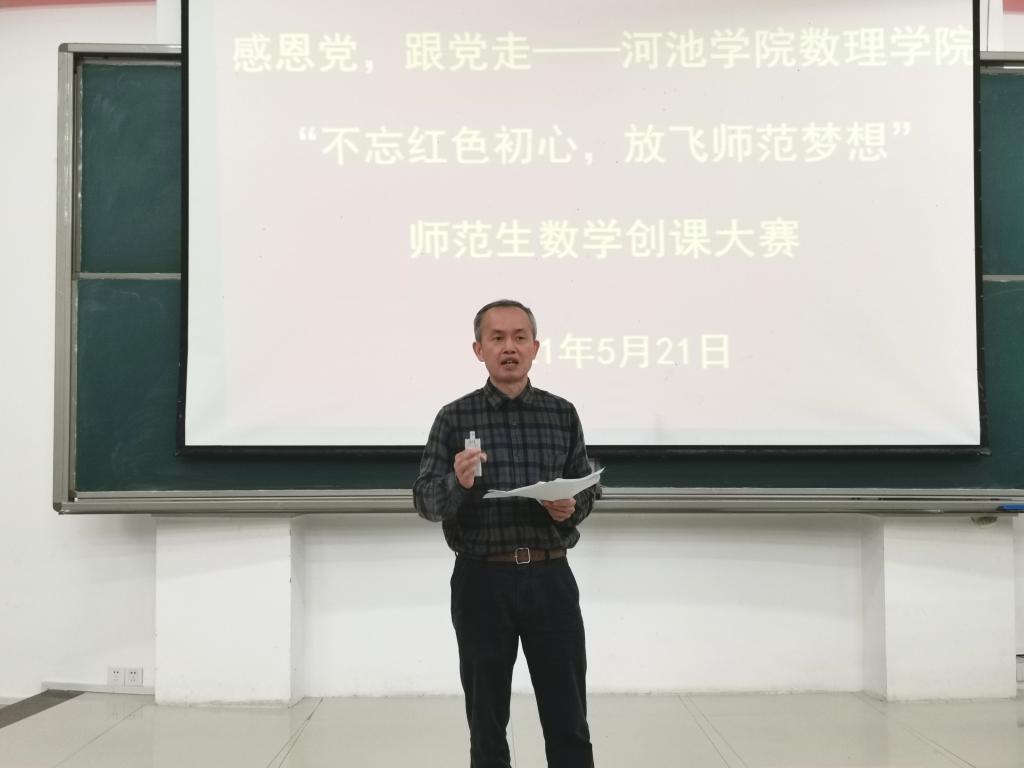 比赛中,参赛队伍依次上台进行自己的创课展示,课堂涉及三角形内角、圆周率的来源及应用、勾股定理、等差数列等中学各年级重要知识点,各参赛队伍在赛场上都表现出了扎实的专业知识和创新的教学设计表达。最后,磨锋老师对本次比赛进行了点评,他说,本次比赛体现了学院的协同育人效应成果初显,展示了我院师范生扎实的教学技能。希望同学们能够夯实专业知识和师范技能,勤练多练,以比赛促进步。