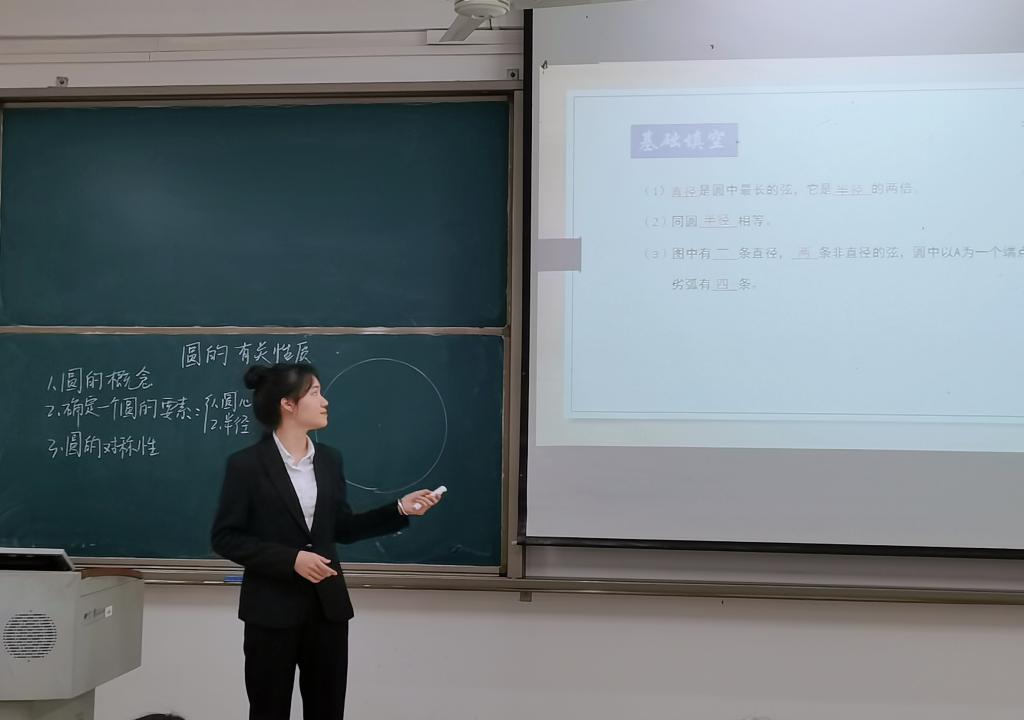 比赛中,12位选手依次登场进行模拟课堂教学展示。赛场上,选手们准备充分,教学设计新颖,语言组织得体,讲解生动,完美地展示了自己的授课能力,展示了我院师范生过硬的专业素养和教学功底。最终经过激烈的角逐,本次大赛共决出一等奖两名,二等奖四名,三等奖六名。赛后,卫银虎老师对本次大赛进行了点评。他说,此次比赛选手们教态自然得体,板书工整,语言表达精炼,PPT制作精美,在教学内容设计中能够较好的体现了数学教学的特点,能够很好的聚焦和激发学生的数学思维活动。希望同学们在今后的学习中进一步强化教学技能训练,将专业知识和师范技能进一步融会贯通,同时积极参加院内外教学技能比赛,以赛促学,以赛促教,不断提升自己师范技能和素养。