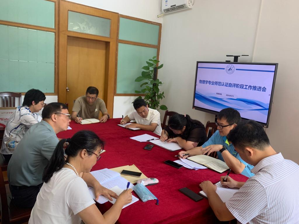 9月11日,betway必威西汉姆联官网在明德楼202会议室召开物理学师范专业认证自评阶段工作推进会,全面梳理自评工作进展,部署下一阶段重点任务。学院院长韦玉程主持会议,物理学师范专业认证工作领导小组全体成员参加会议。